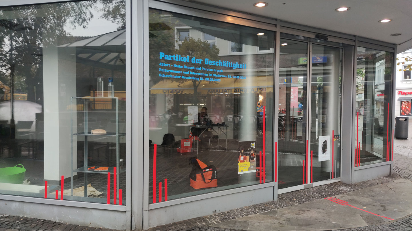 Das Kollektiv 431art mit den Künstler*innen Haike Rausch und Torsten Grosch führt eine performative Spurensuche in der Innenstadt von Ahlen durch. Über eine Woche hinweg werden an fünf ausgewählten Orten Aktivitäten und deren Auswirkungen auf den öffentlichen Raum untersucht.