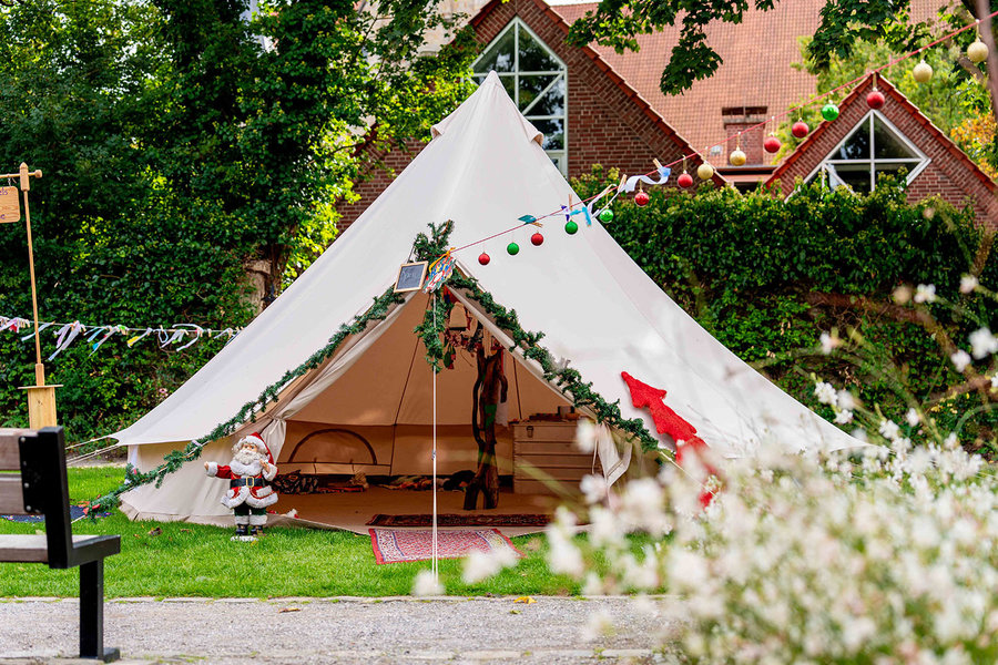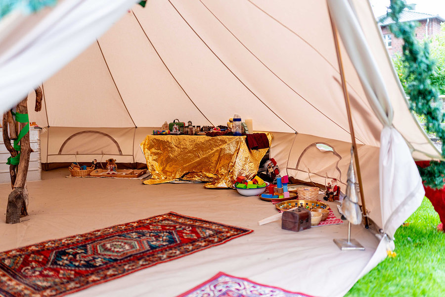 Hermine Himmel begleitet das Spielerlebnis mit entsprechenden theaterpädagogischen Methoden und Spielangeboten. Ihr Weihnachtszelt ist während der Veranstaltungszeiten als begehbare Installation für alle Besucher*innen zugänglich und bietet neben Hermines durchgängiger Performance im Außenbereich die Möglichkeit zum Entdecken, Erforschen und zum Bespielen von Weihnachtsreliquien.