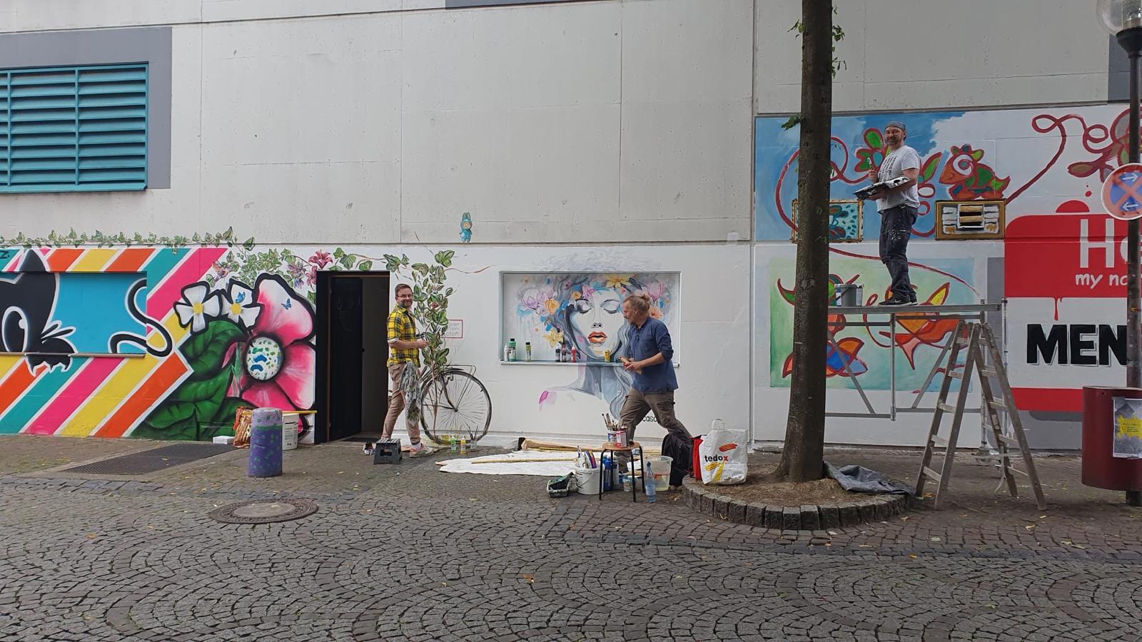 Nach der Auswahl von zwei Standorten – nämlich einer an einem Parkplatz gelegenen Wandfläche und einer großen Parkhaus-Fassade, die sich direkt neben einem Supermarkt befindet – fanden in den darauffolgenden Monaten an drei Wochenenden (27./28. Juni 2025; 11./12. Juli 2025; 8./9. August 2025) partizipative Gestaltungsaktionen statt.